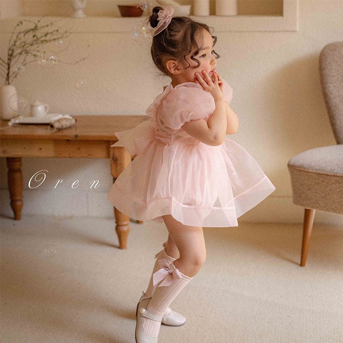 仙氣飄飄公主後綁帶包屁紗裙/洋裝(粉)