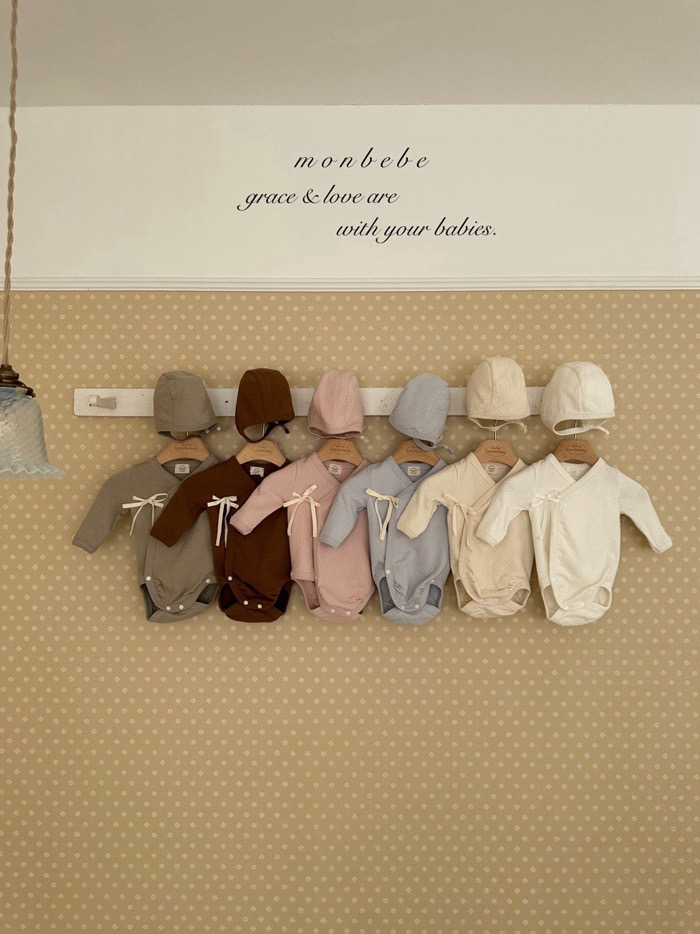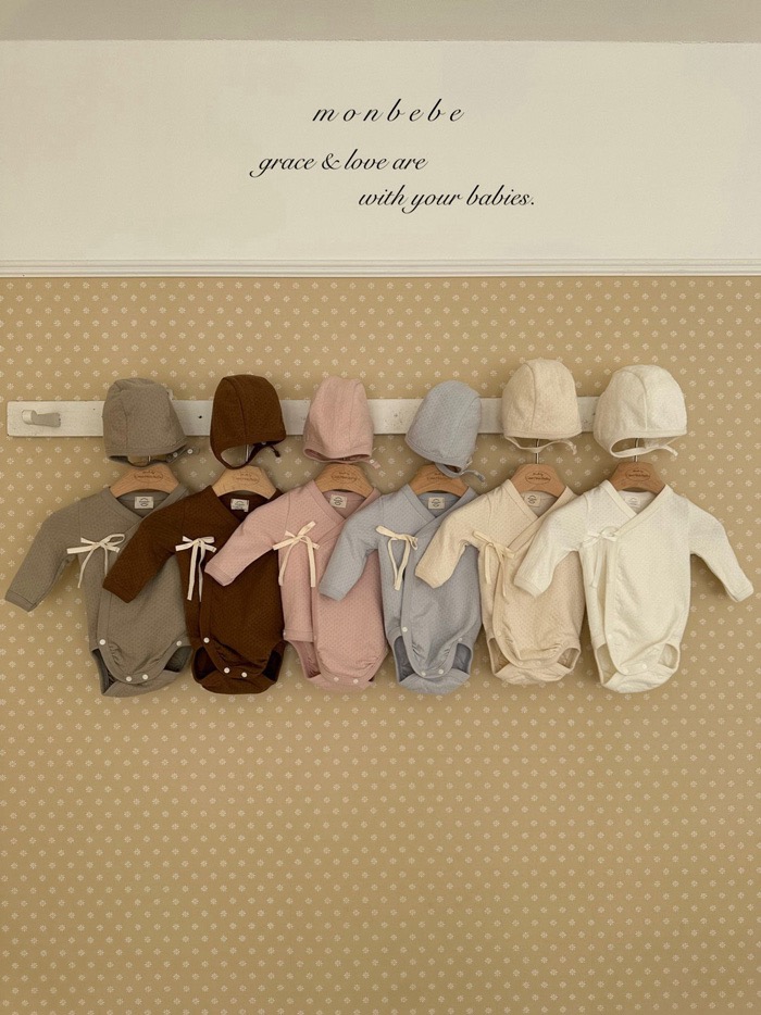 蝴蝶結點點側開扣新生兒服*現貨粉