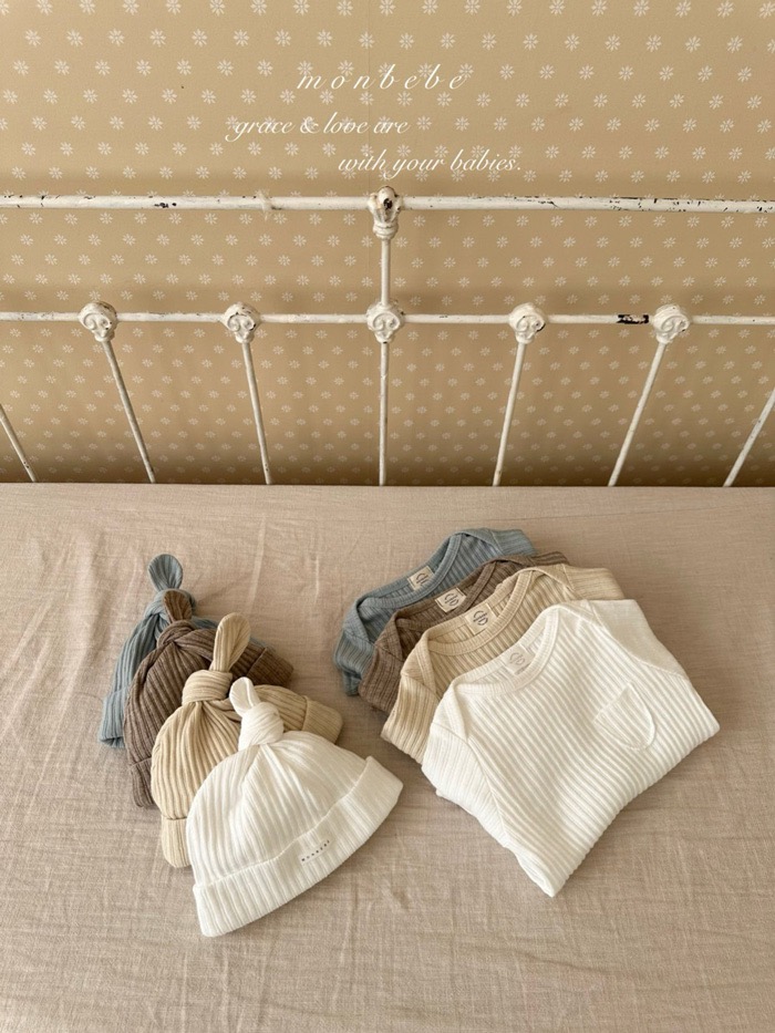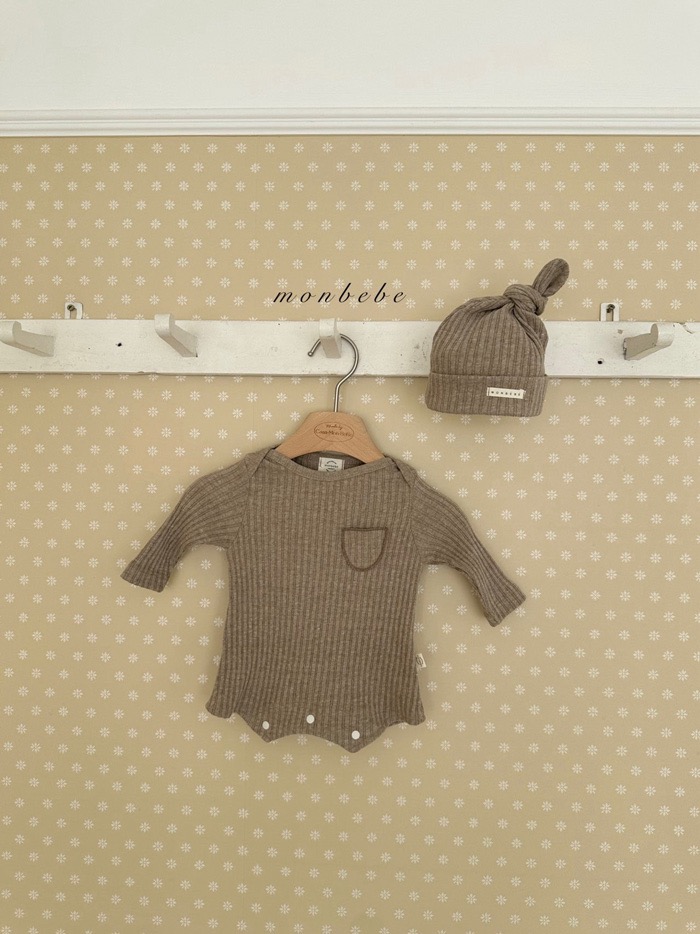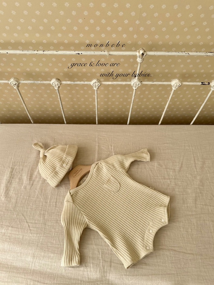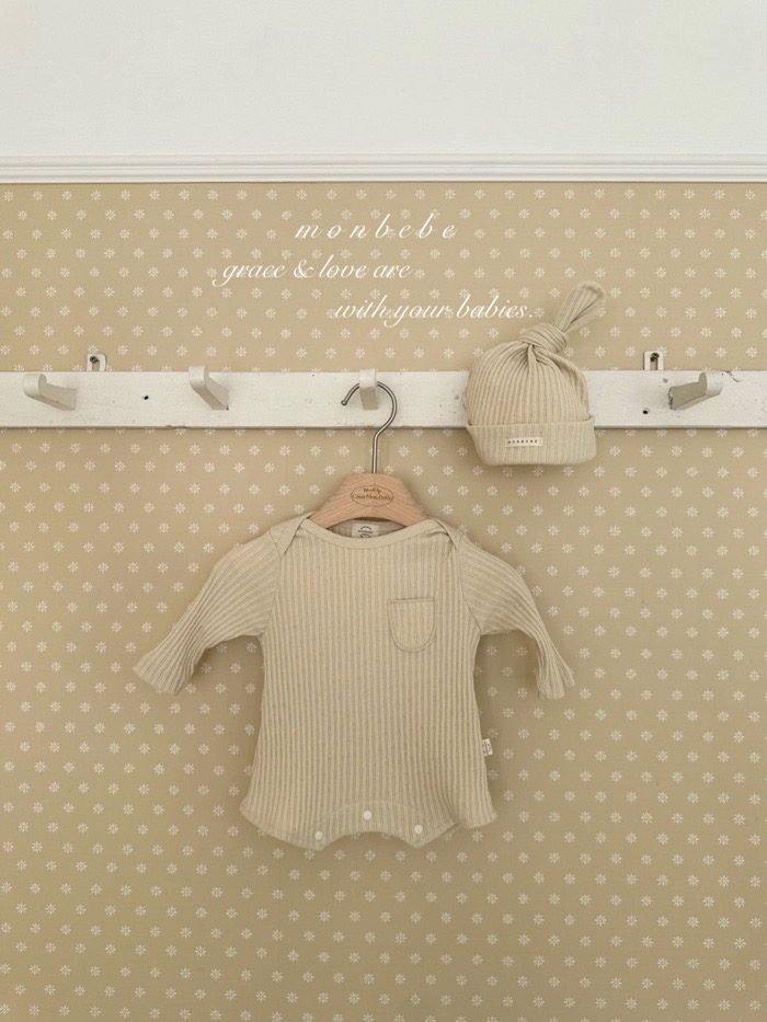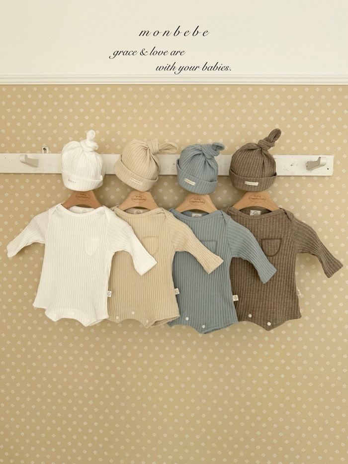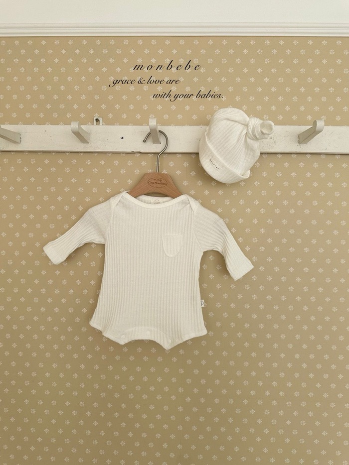 小口袋紋理包屁衣+寶寶帽set