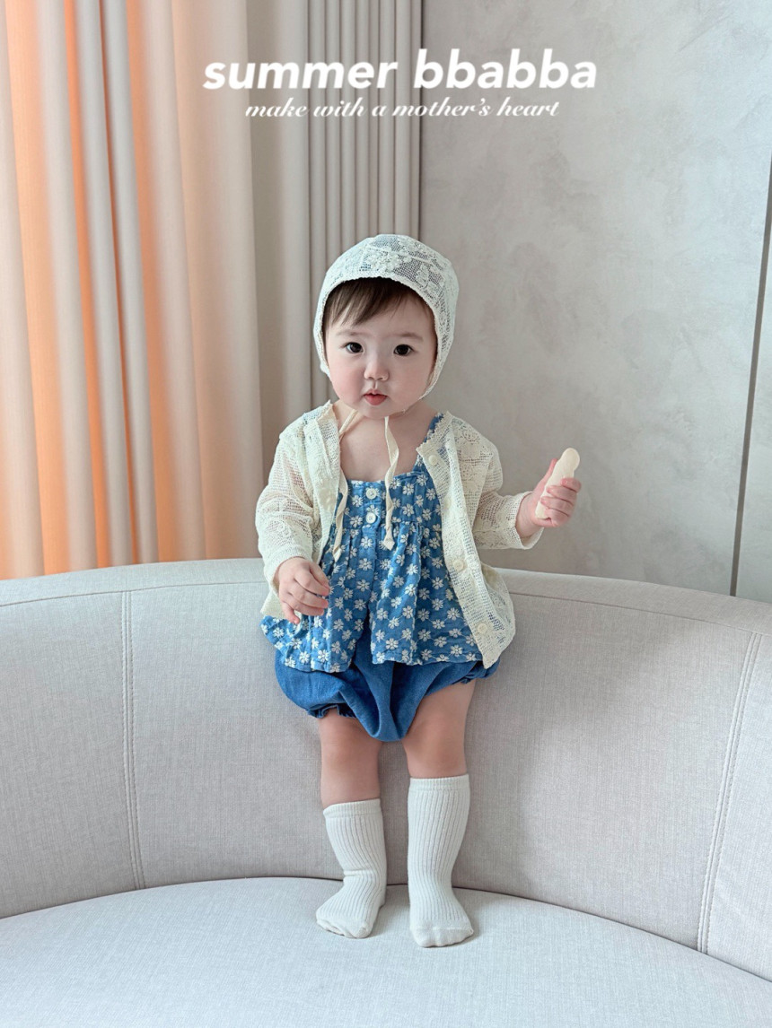 蕾絲領愛心刺繡包屁衣