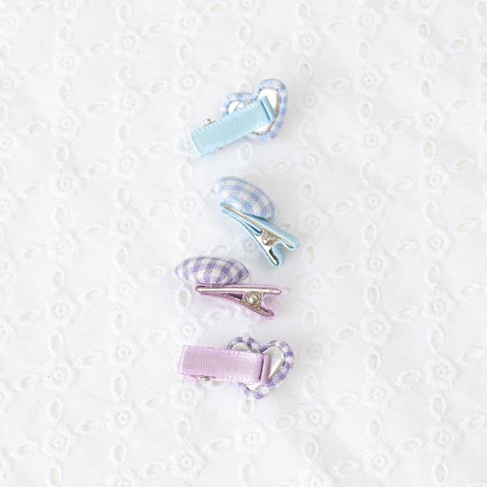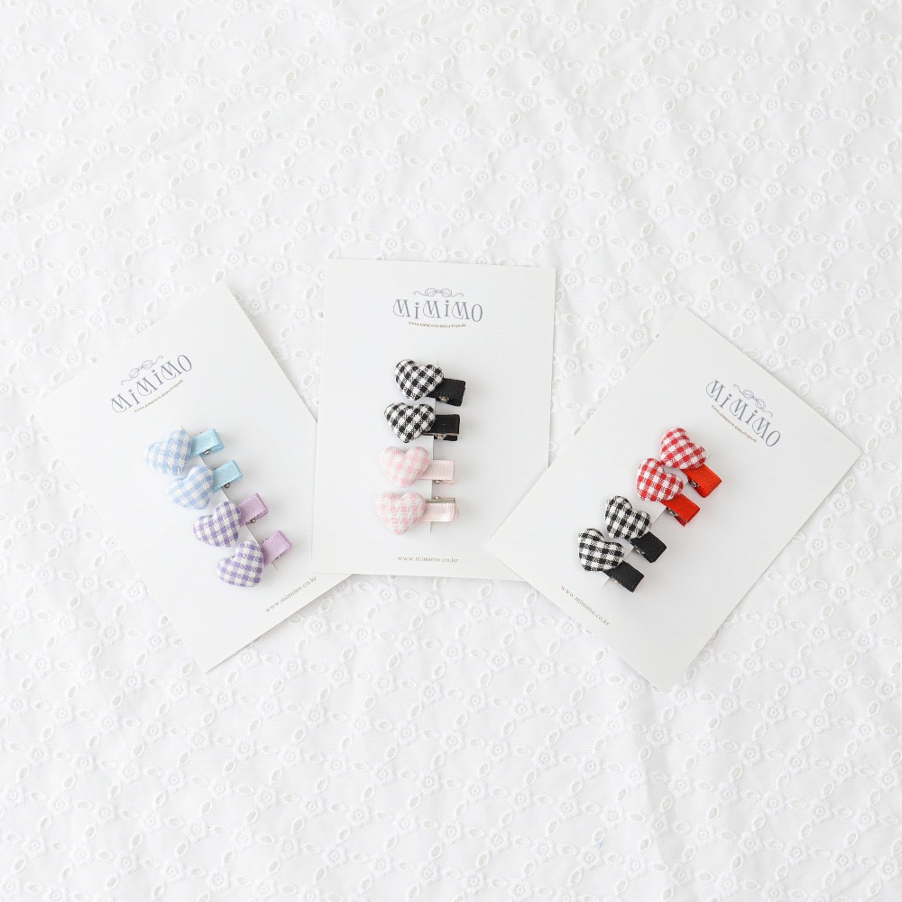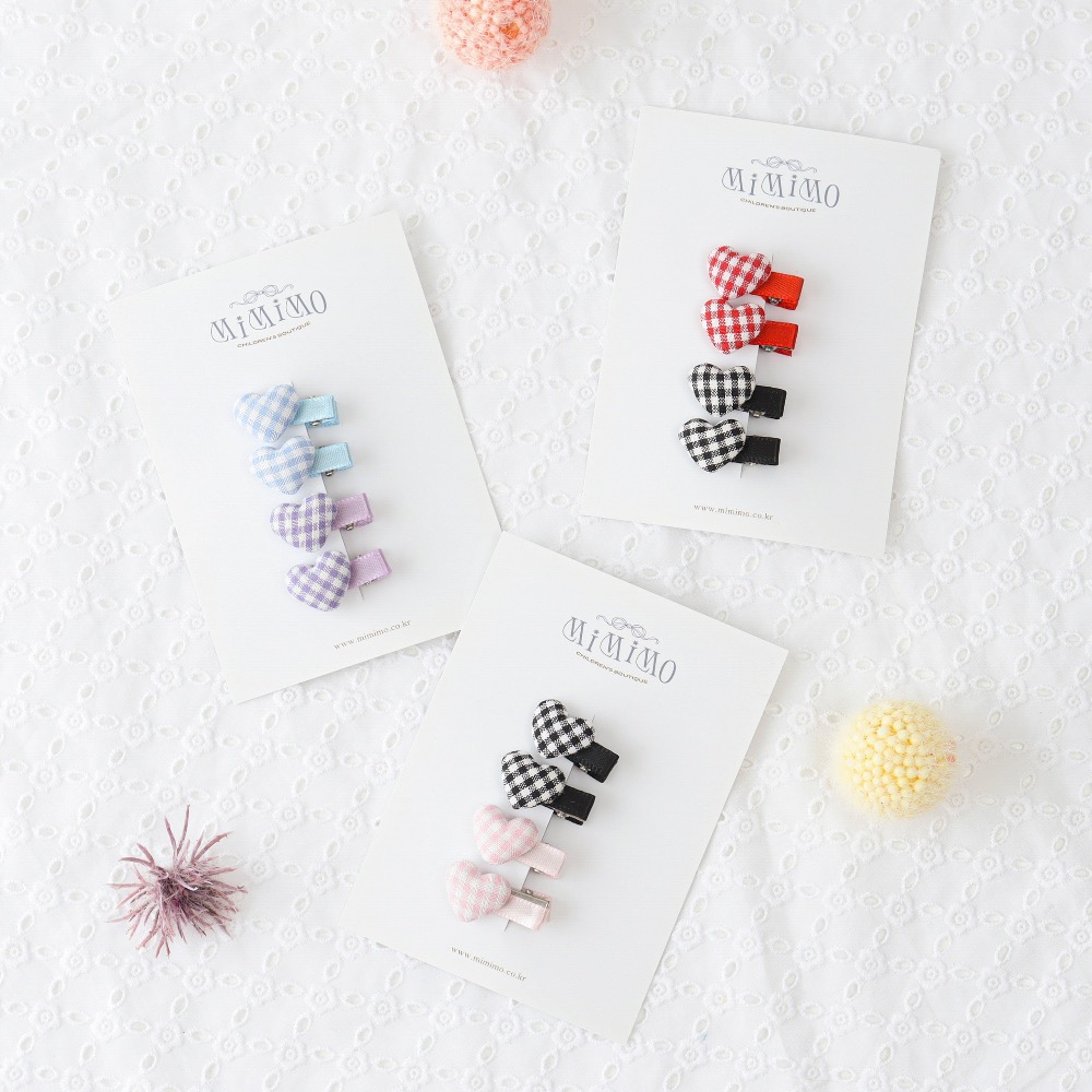 愛心格紋髮夾4入組