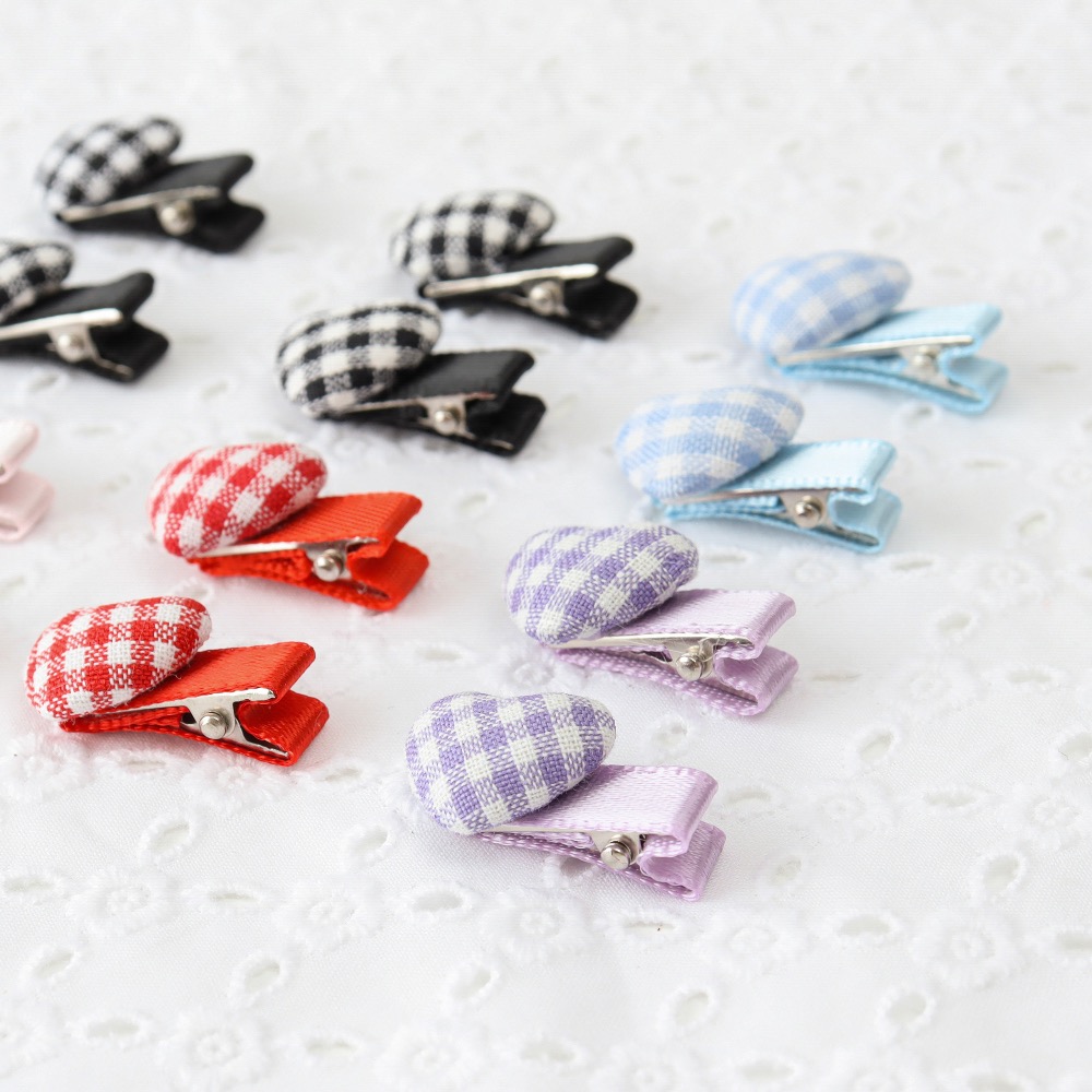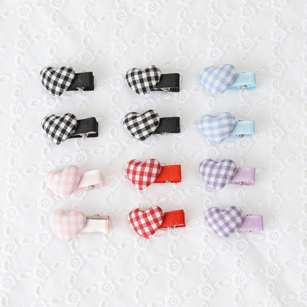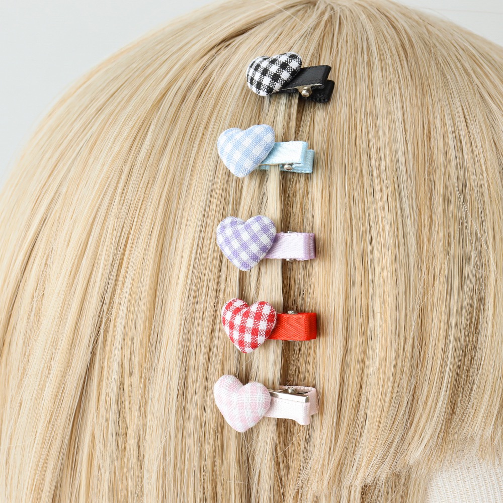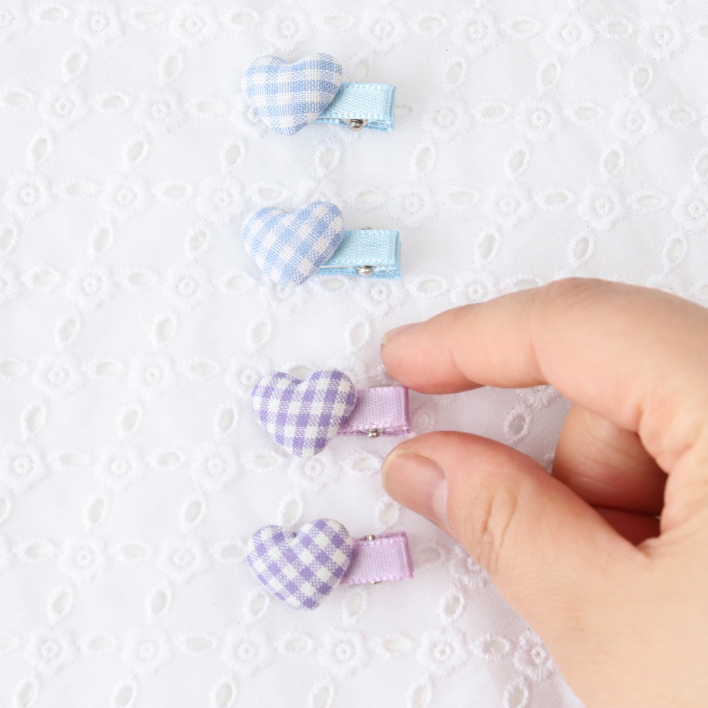愛心格紋髮夾4入組