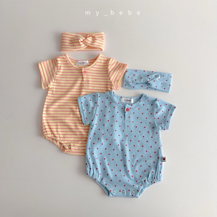撞色包屁衣+髮帶set
