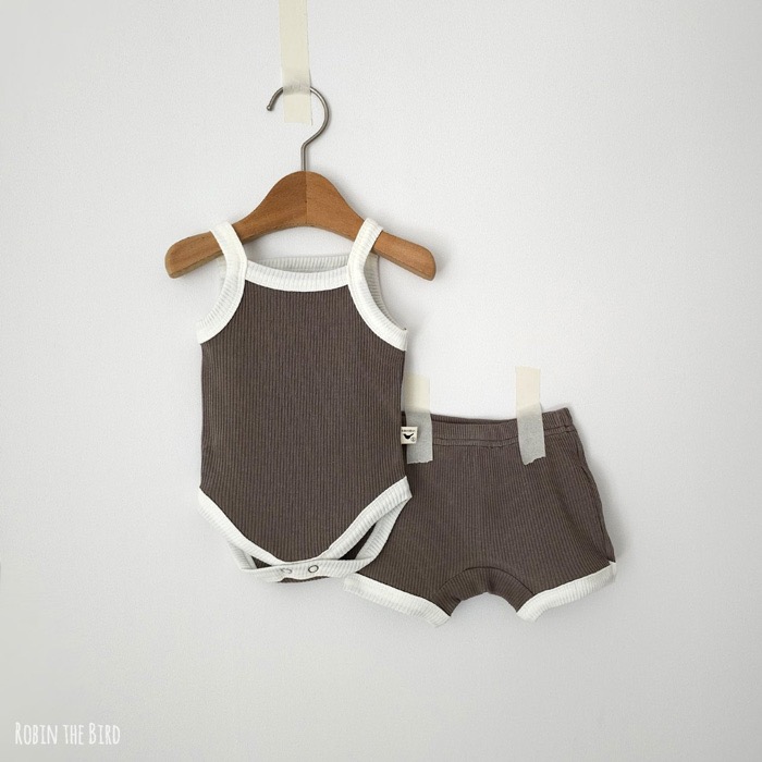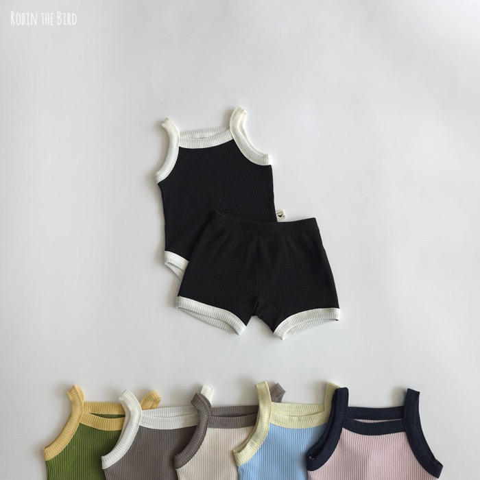 撞色背心包屁衣+褲set