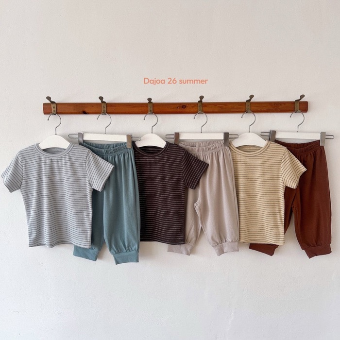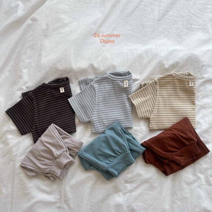 條紋上衣+縮口長褲套裝(3color)