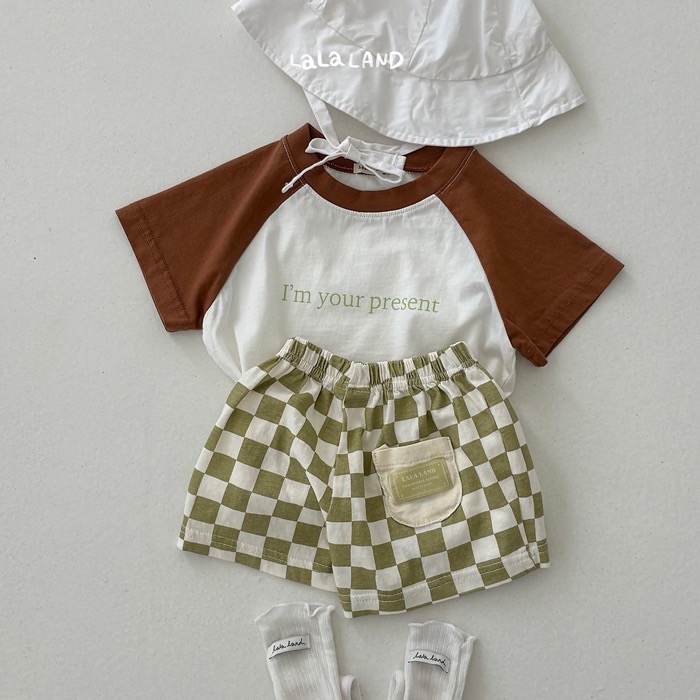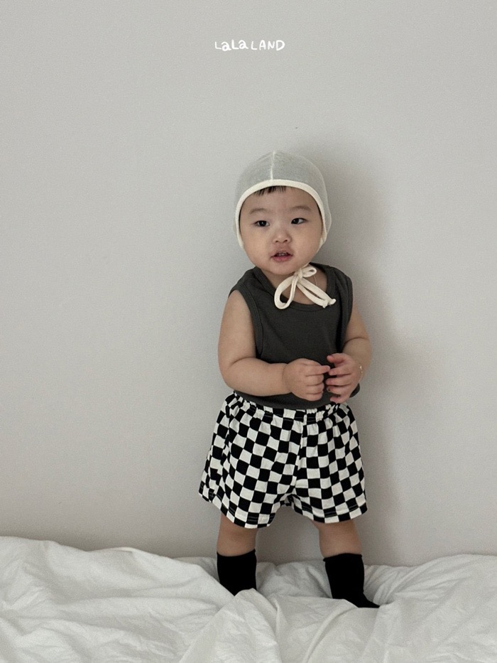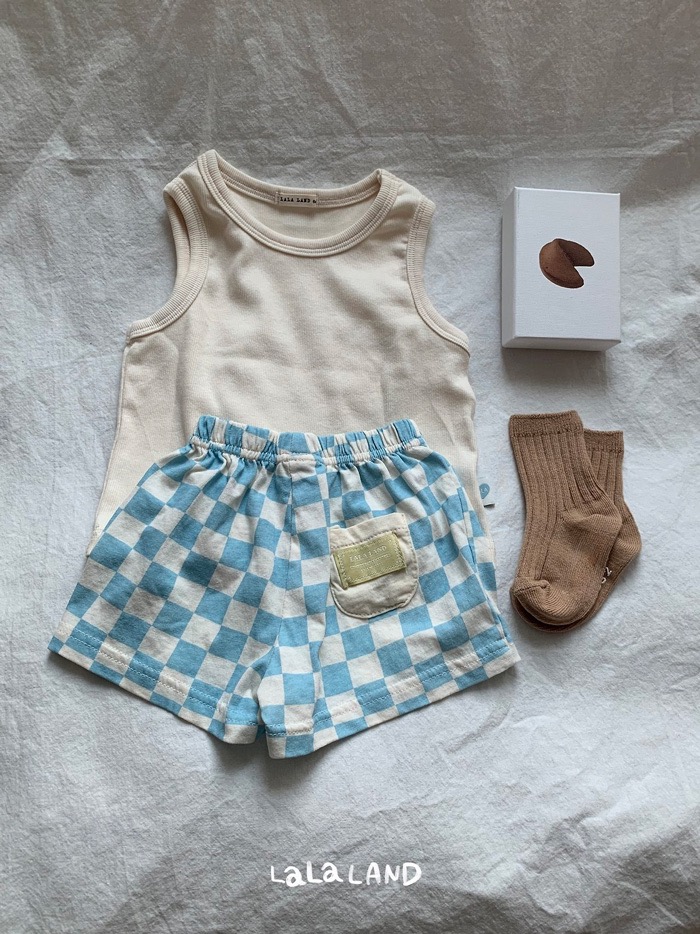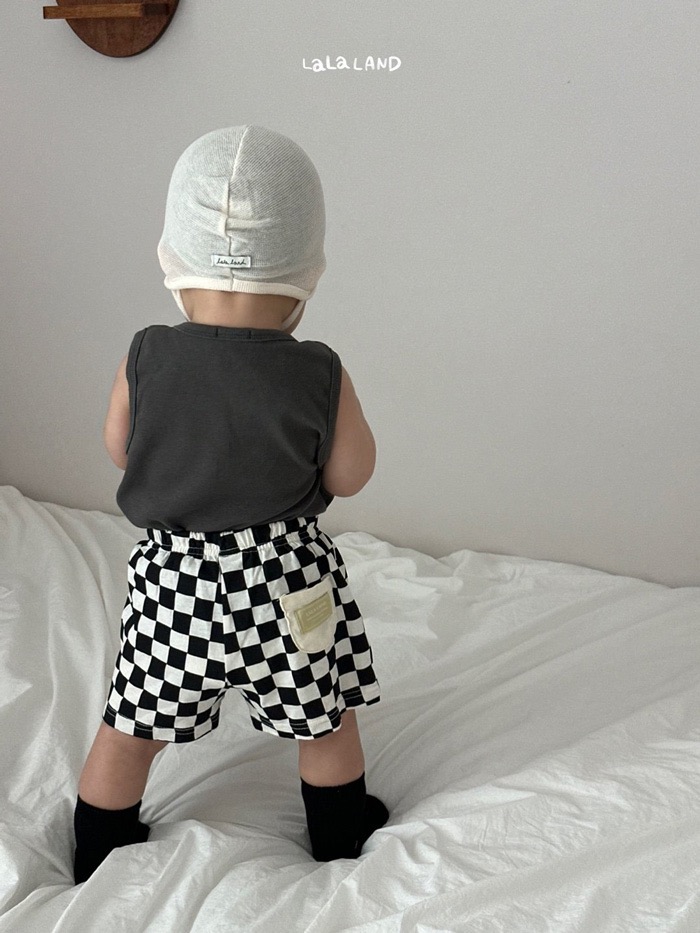 棋盤格紋布標口袋鬆緊褲(3color/baby)