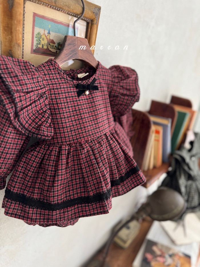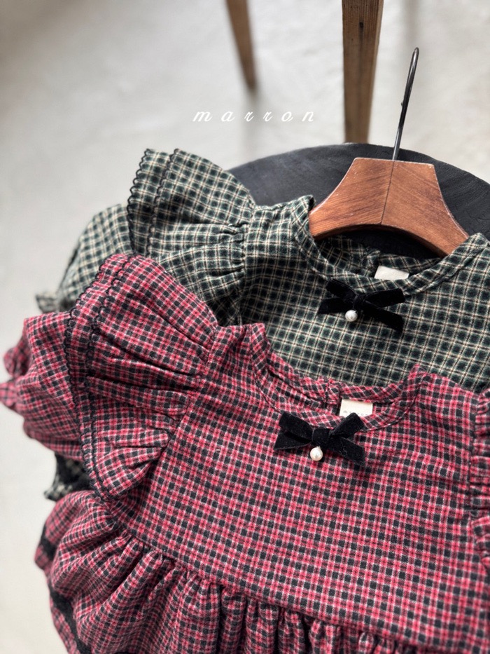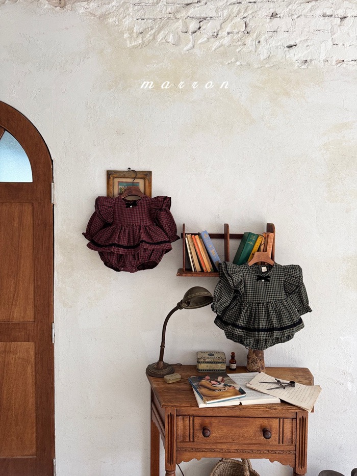 珍珠ribbon飛袖小格紋包屁裙*現貨綠18m
