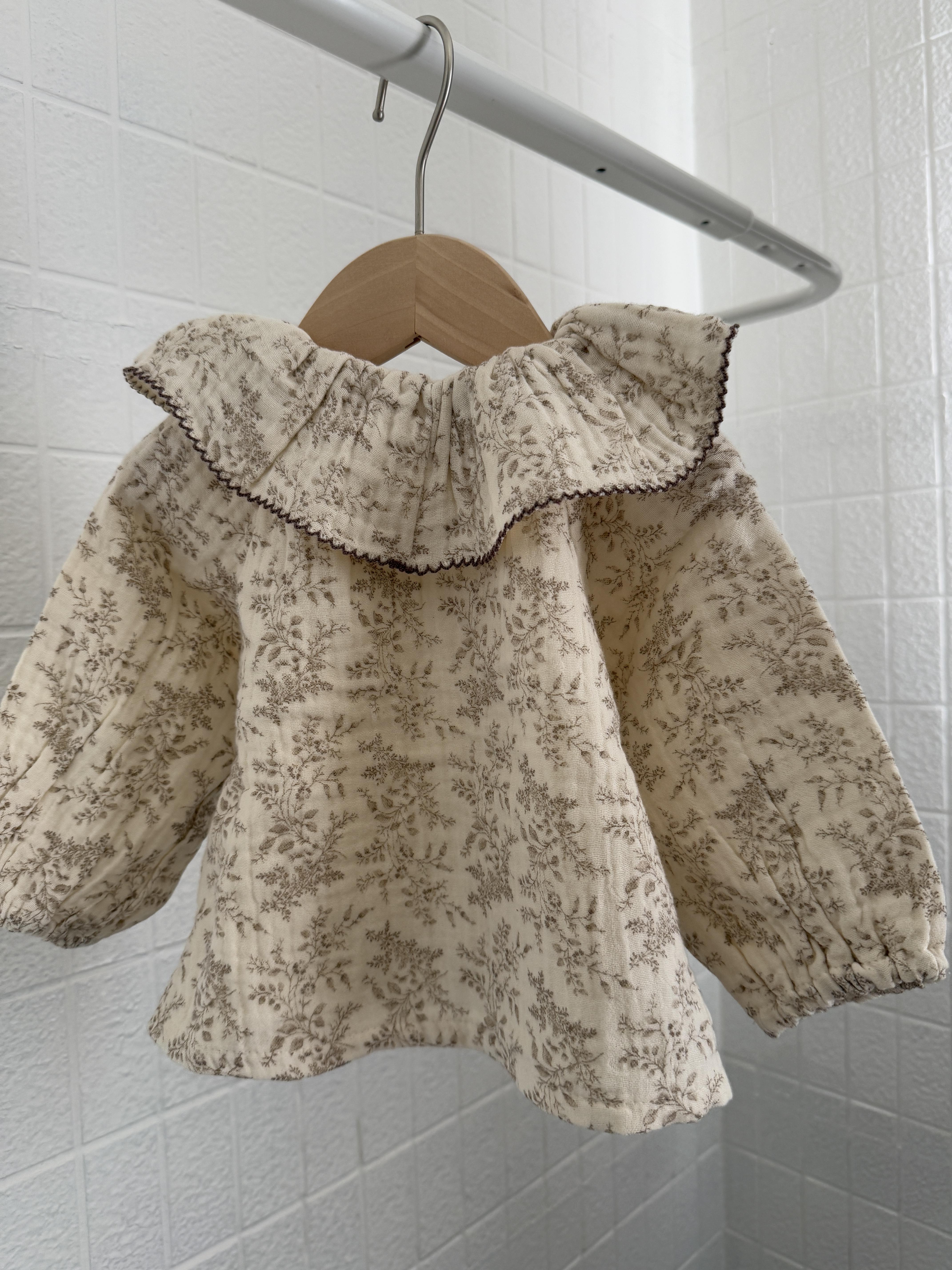 木耳捲邊愛心刺繡糖果上衣(2color)