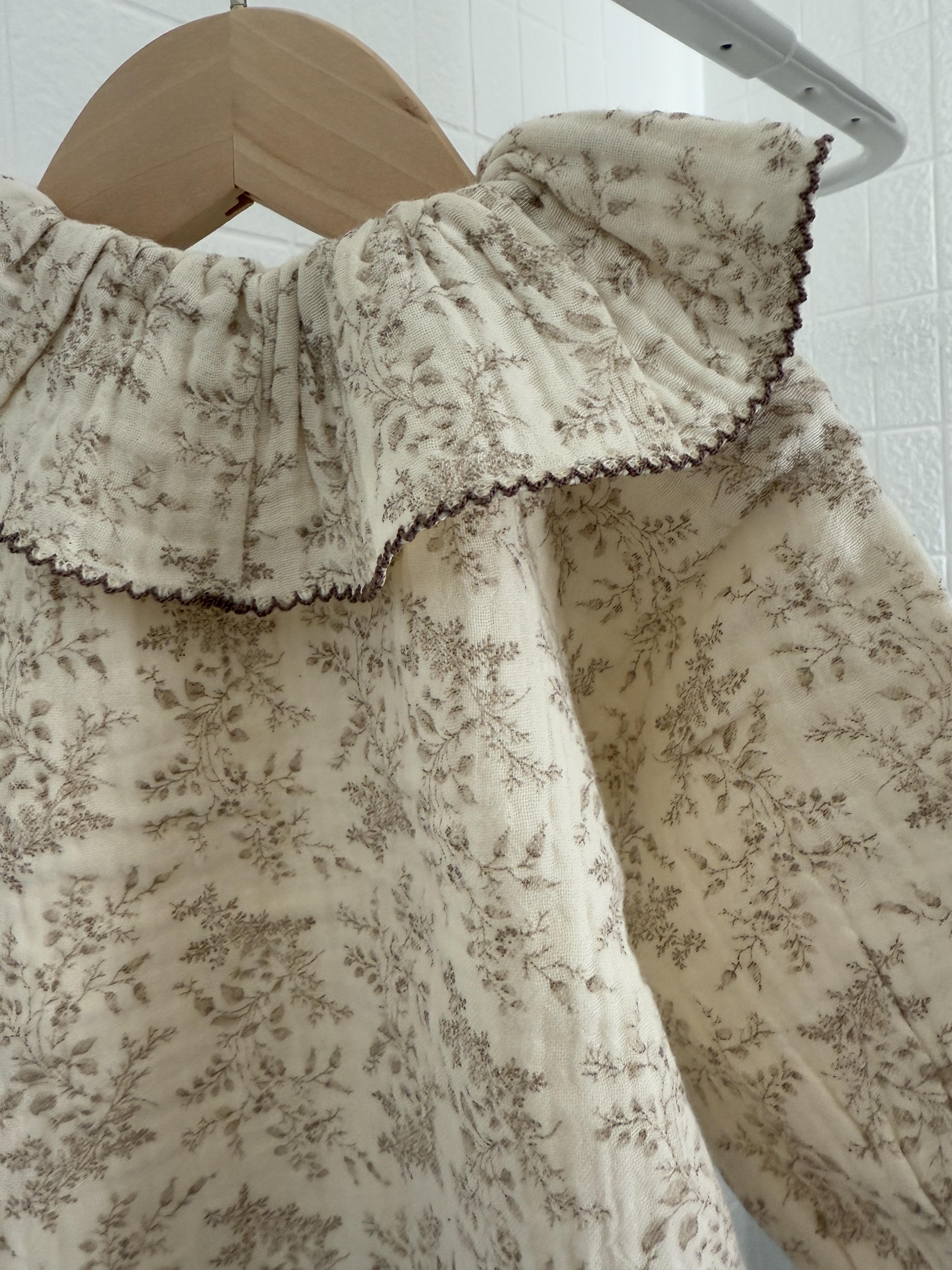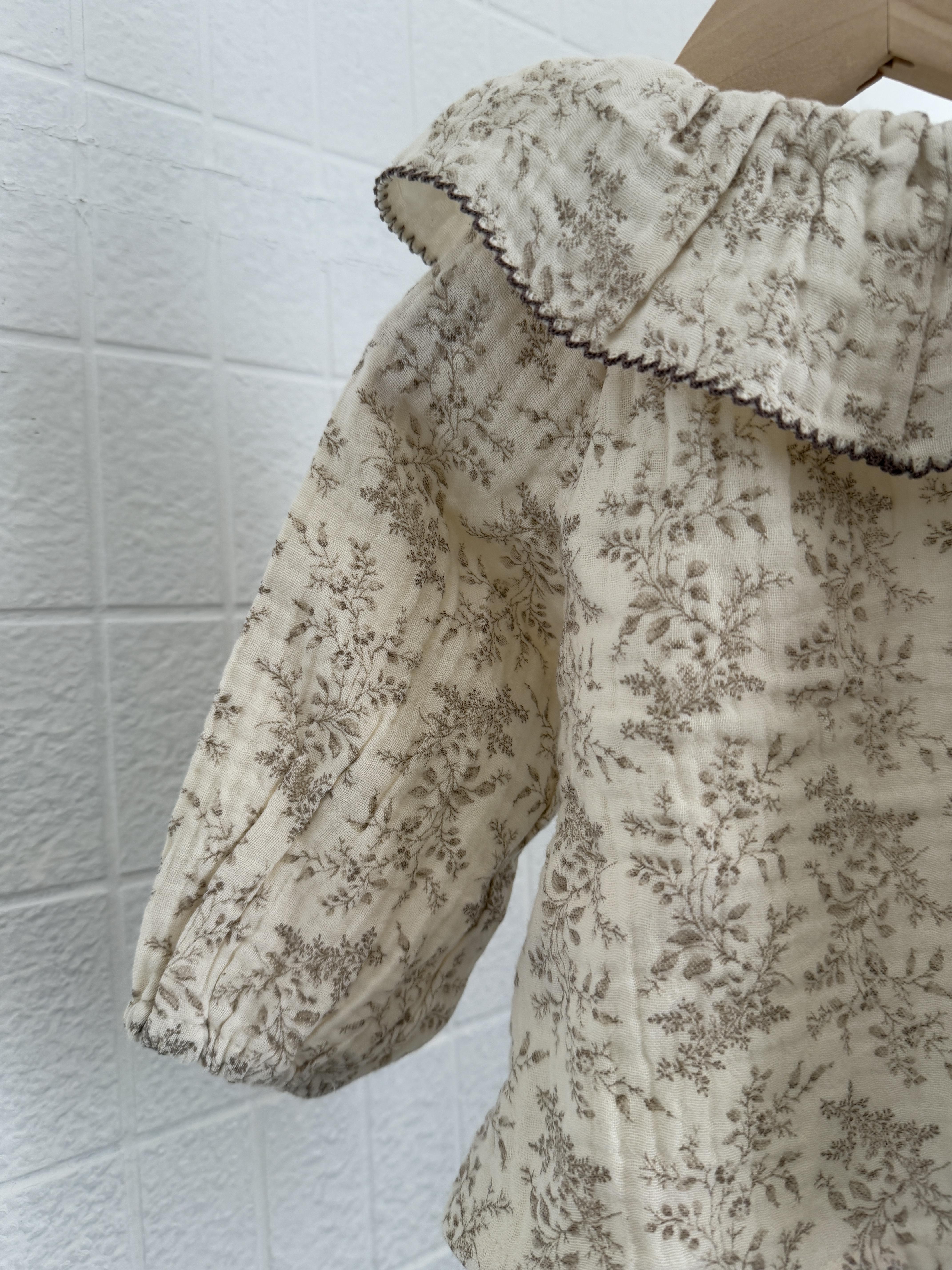 蕾絲ribbon層次蛋糕方領上衣(2color)