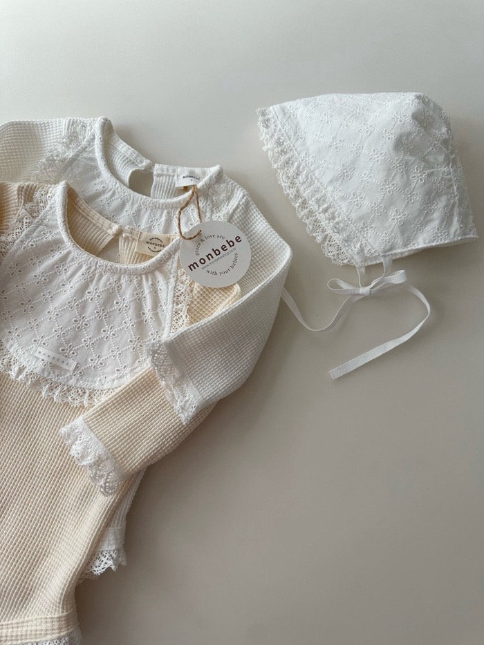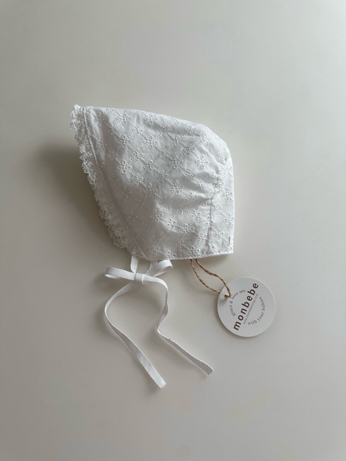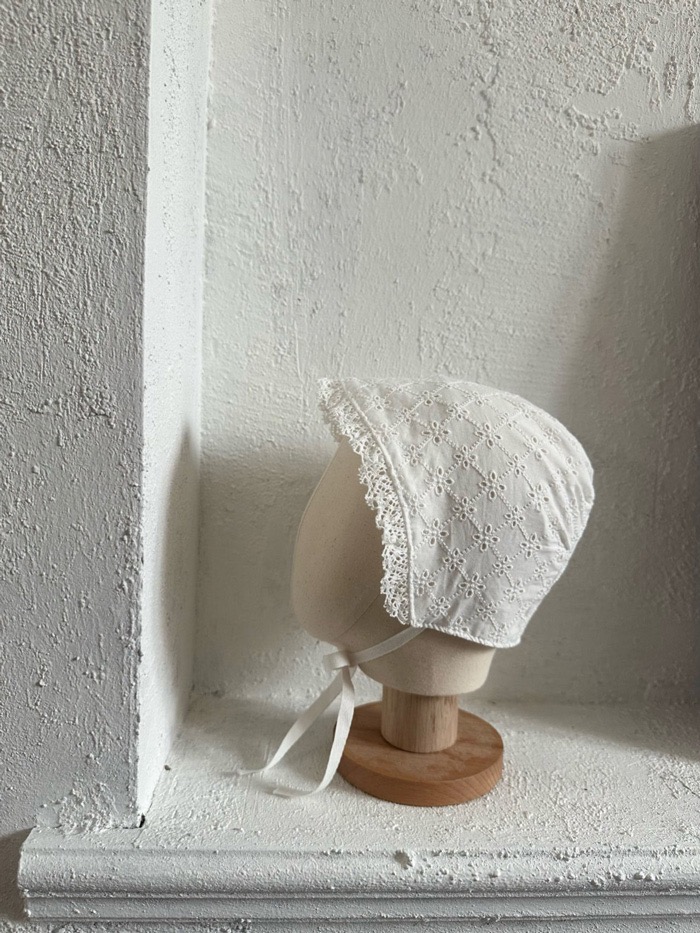 蕾絲滾邊壓紋綁帶帽