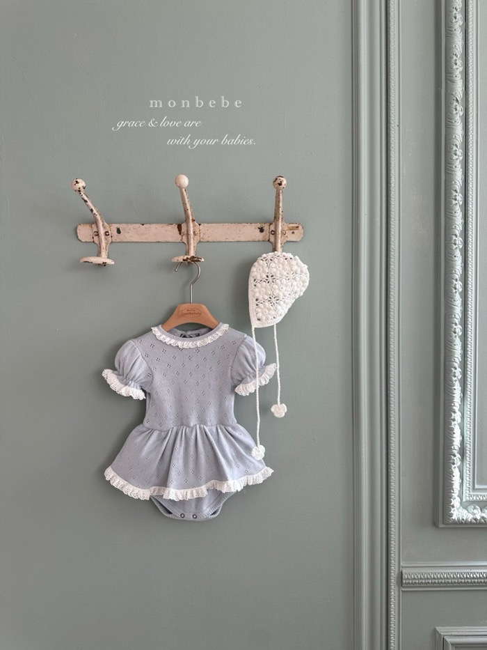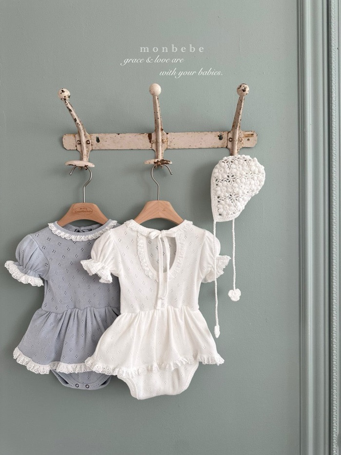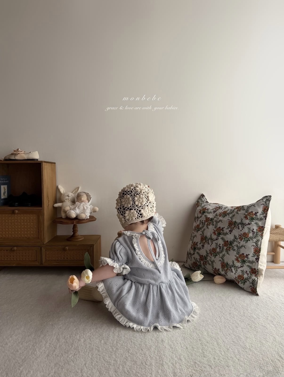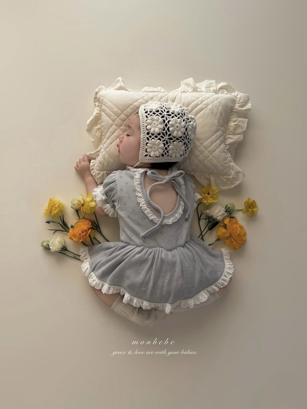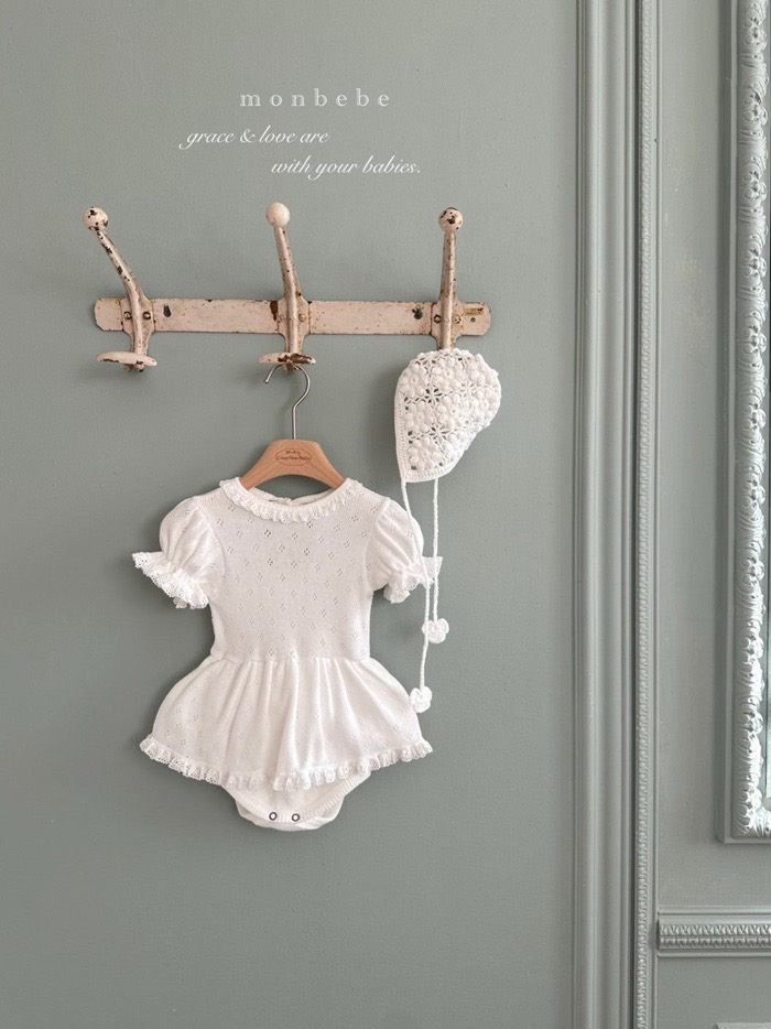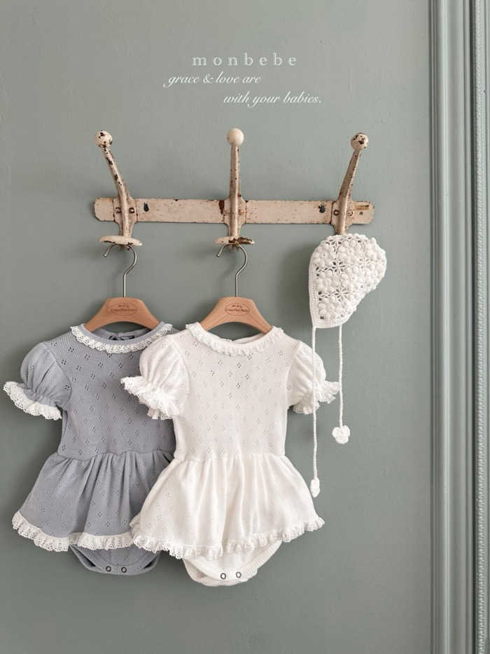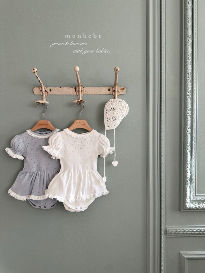 蕾絲滾邊小刺繡澎袖包屁裙(2color)