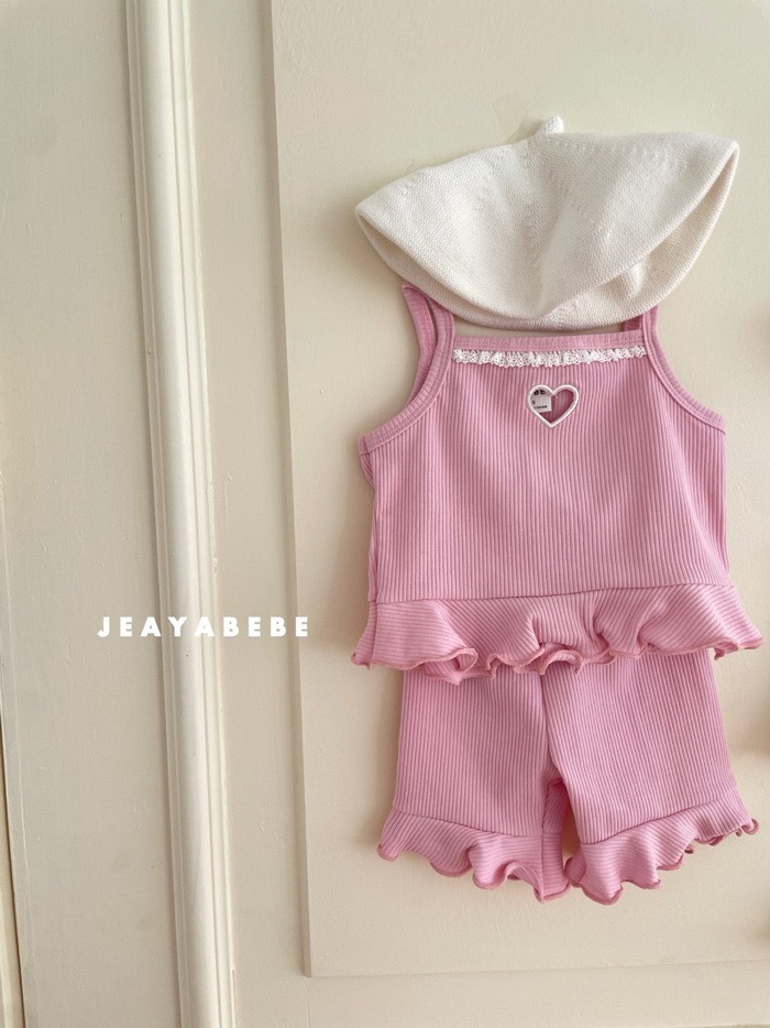 鏤空愛心木耳捲邊背心套裝